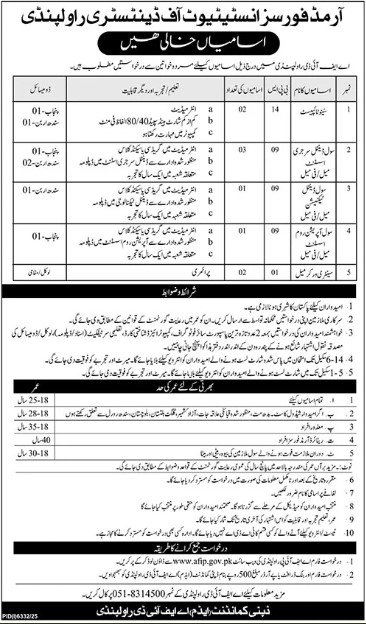 Vacancies Details of Career Opportunities At Armed Forces Institute of Dentistry 2026